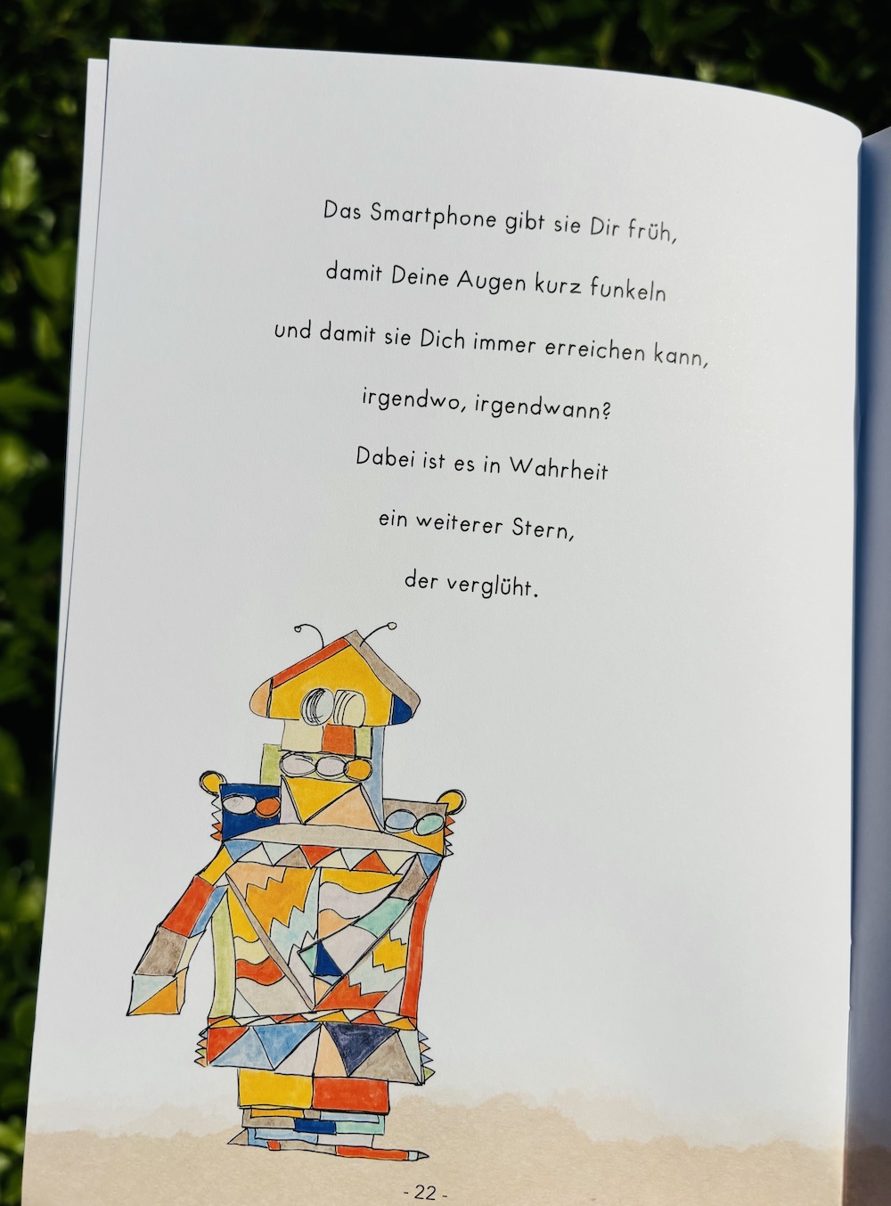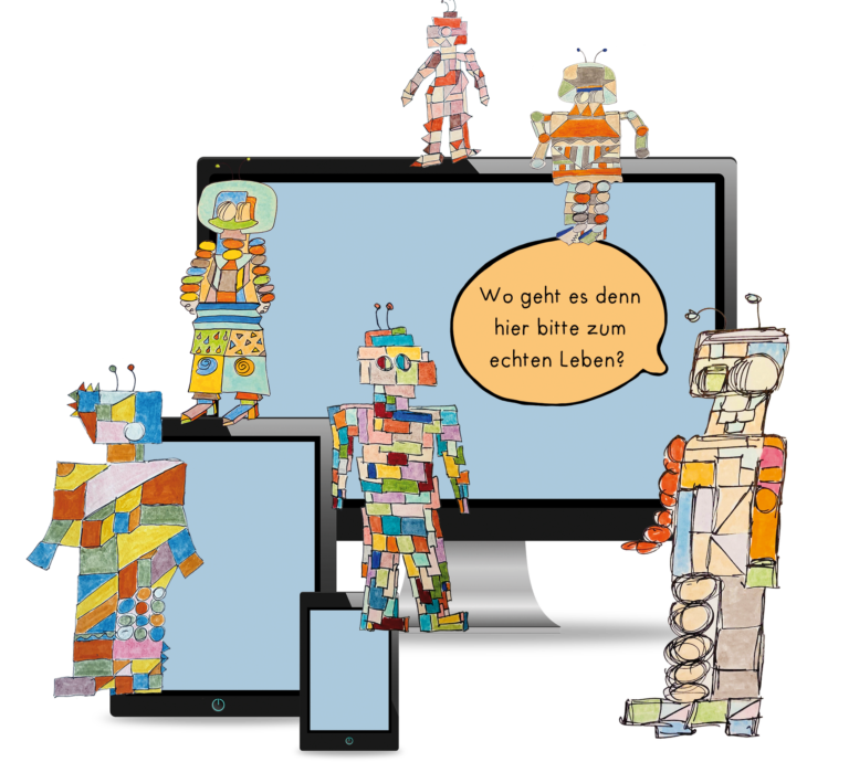 Wie auch immer: Bei dem kreativen Versuch, etwas Zukunftsweisendes zu erschaffen, sind wir schließlich bei kunterbunten, roboterähnlichen Wesen gelandet, und sie gefallen uns ziemlich gut! Bei aller Technik, die manchmal etwas unheimlich anmutet, haben sie sich einen ganz besonderen Charme erhalten – ihren ganz eigenen…