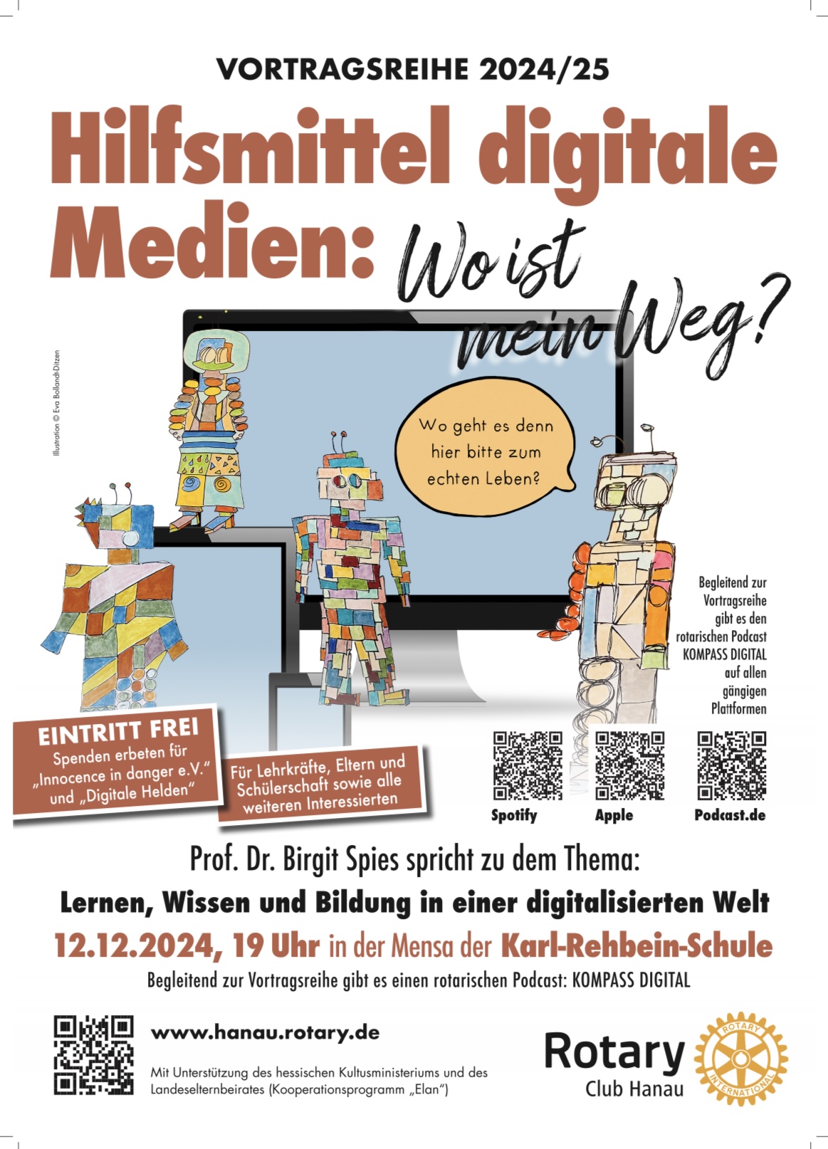 Einjährige Vortragsreihe 2024/2025 Rotary Club Hanau: „Hilfsmittel digitale Medien – Wo ist mein Weg?“