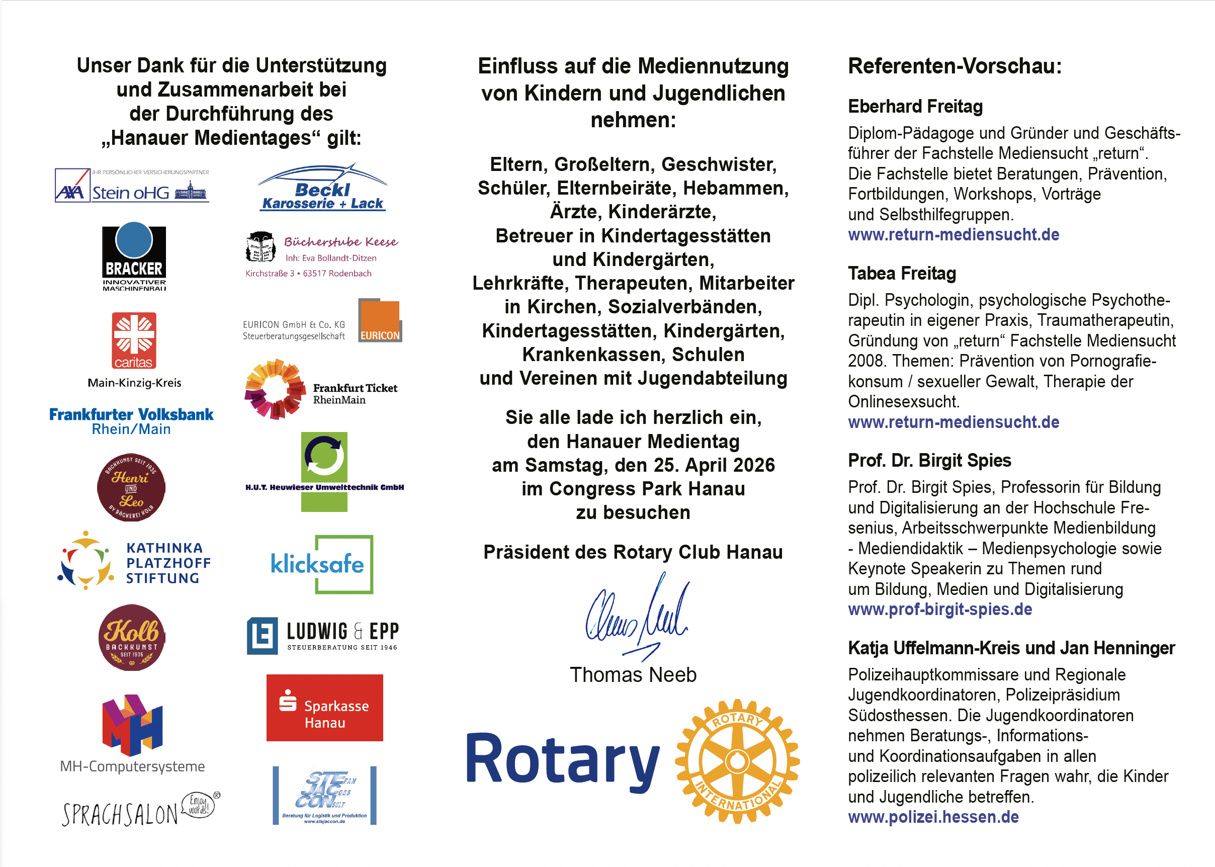Einjährige Vortragsreihe 2024/2025 Rotary Club Hanau: „Hilfsmittel digitale Medien – Wo ist mein Weg?“